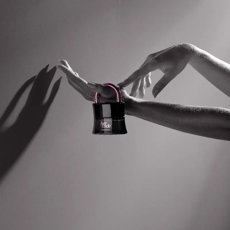 O frasco, em formato de cadeado e trazendo a evolução do rosa em sua dimensão mais quente, liberta o seu desejo e toda a sua sensualidade, com o ar do mistério e os códigos de sofisticação da linha.